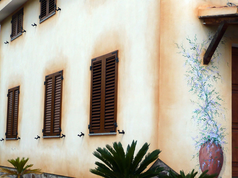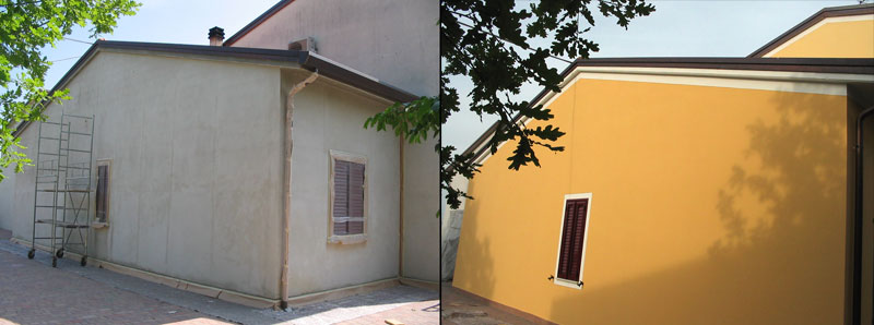 Pitture per esterni a base di silicati, silossani o quarzi, pitture a calce per il gusto dell'antico o di nuova concezione come quelle al titanio e autopulenti che sfruttano la nanotecnologia. Rivestimenti con termocappotti di sughero, polistirolo o canna palustre finiti a intonaco civile o intonachino. |
