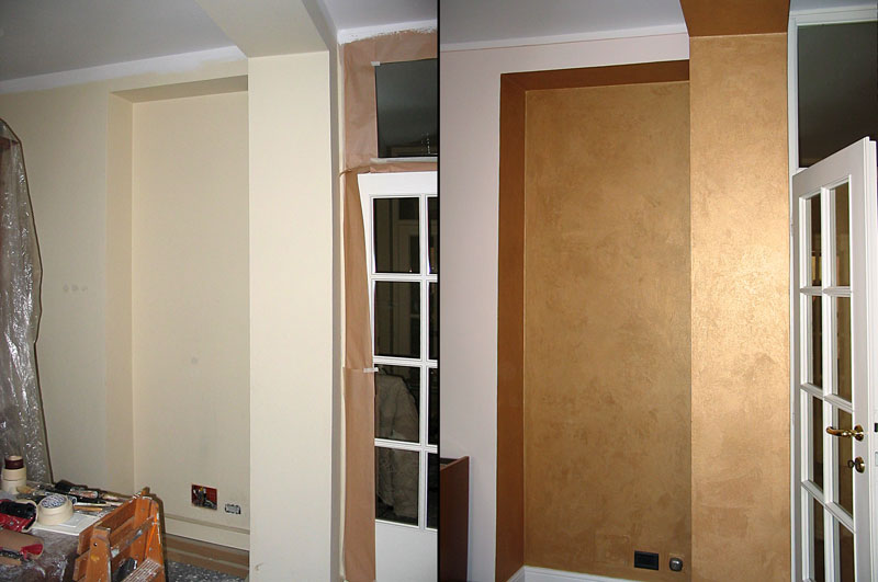 Materiali acrilici lavorati a spatola, velature eseguite a pennello, guanto, spugna o straccio,